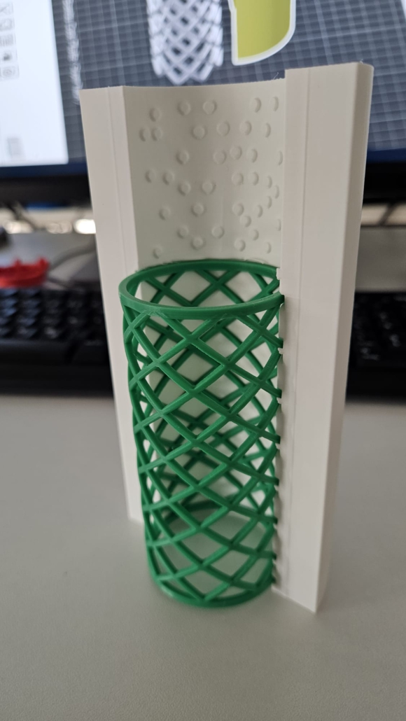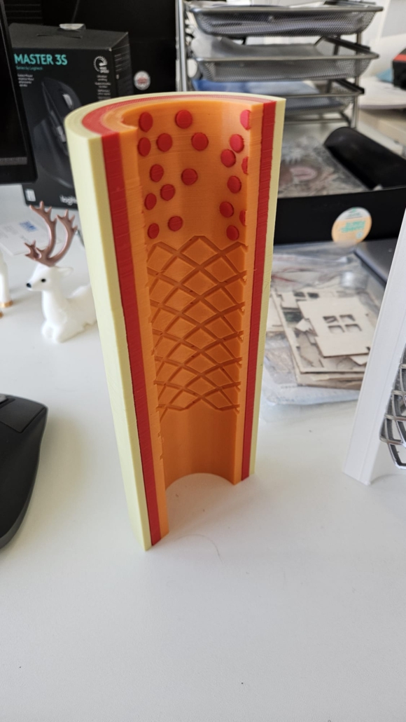 Das StartUp möchte andere Investoren von seiner Idee überzeugen. Da diese ein hochkomplexes medizinisches Problem behandelt, dass gerade nicht medizinisches Personal nur äußerst schwer versteht, kam das StartUp zum TZL um dort eine 3D-gedruckte Visualisierung für seinen Prototypen zu bekommen.